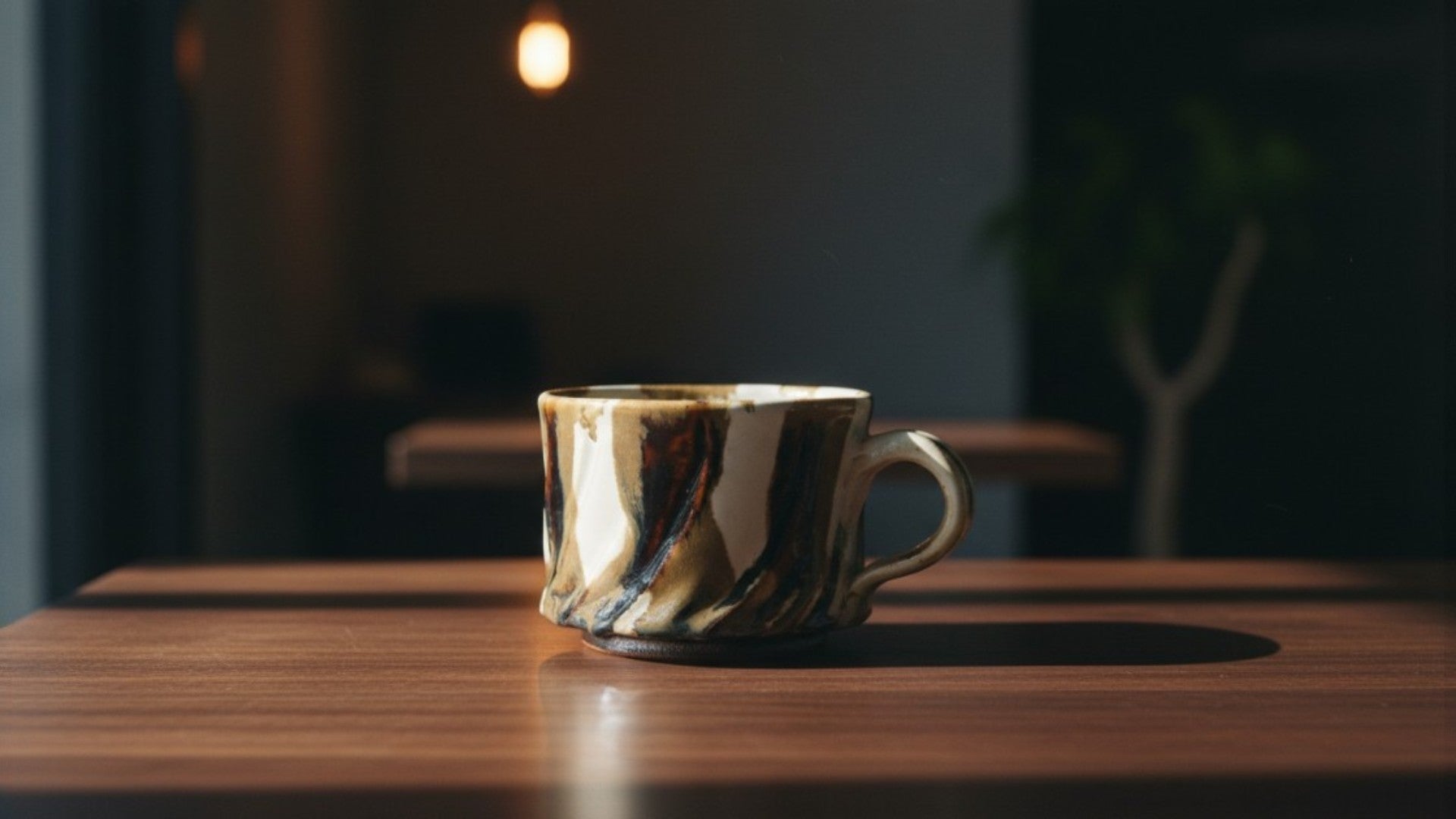 Tamba Ware Large Faceted Mug Ash Glaze Honey Tone