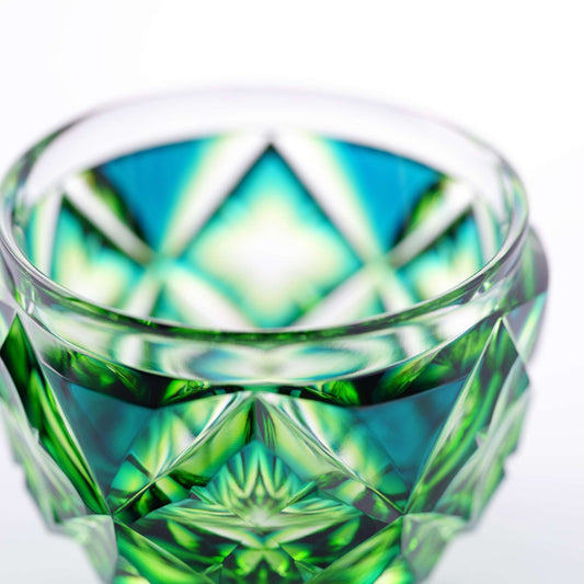 Satsuma Kiriko Two-tone Sake Glass Lapis Green