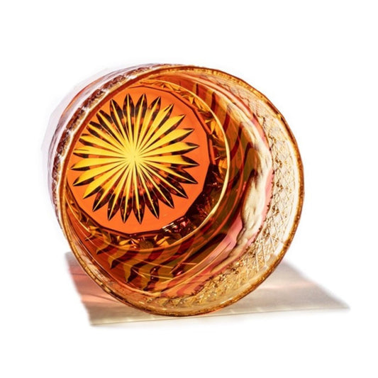 Edo Kiriko Amber Red Whiskey Glass Sazanami