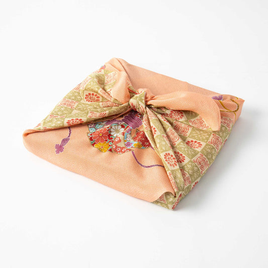 Orange Hanamaru Silk Furoshiki Wrapping Cloth