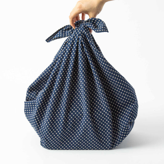 Navy Blue Sashiko Organic Cotton Furoshiki Wrapping Cloth