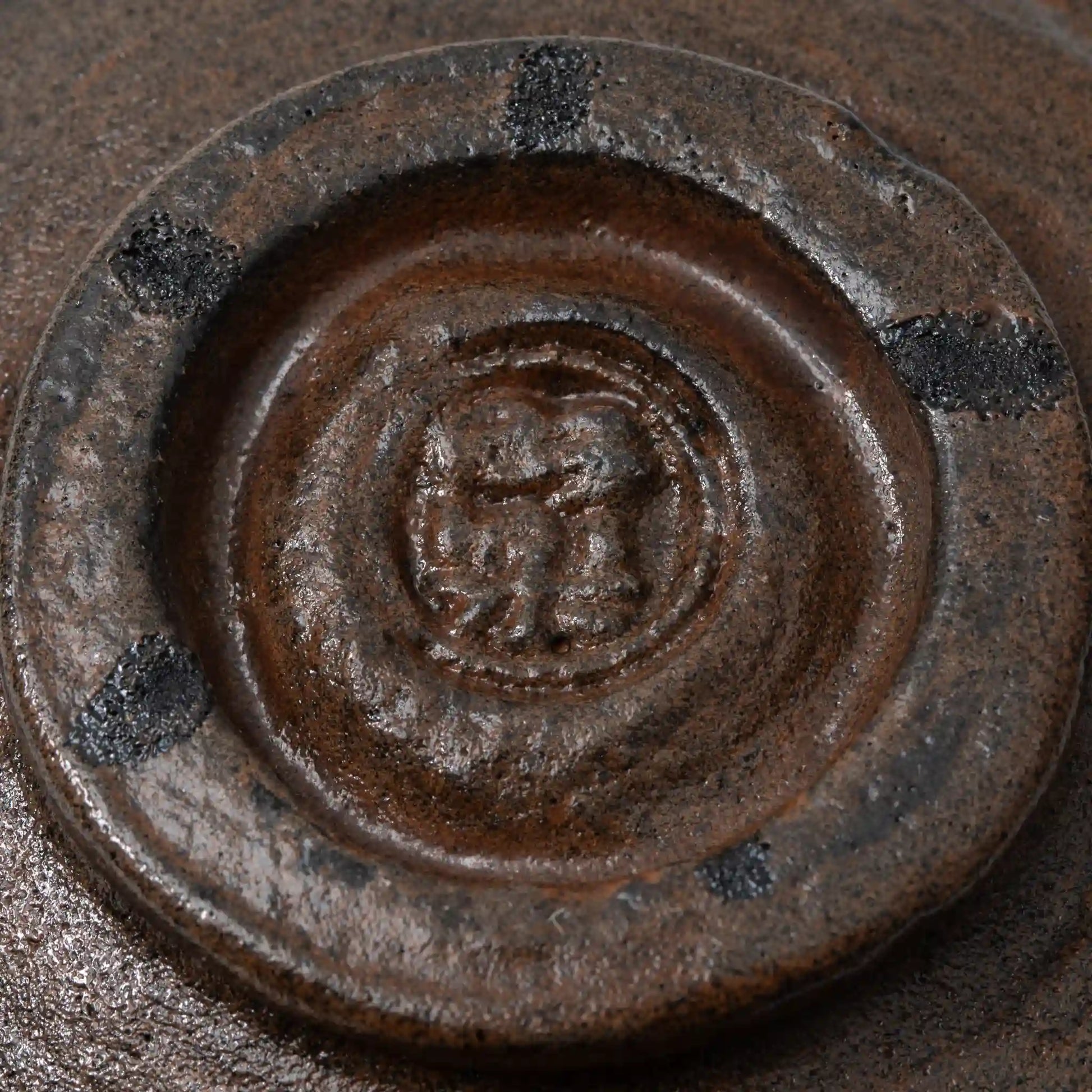 Few objects in Japanese ceramic history carry the weight of a Chojiro black raku chawan. Chojiro, the 16th-century founder of raku ware, shaped bowls by hand rather than wheel, producing forms of deliberate irregularity that the tea master Sen no Rikyu recognized as the perfect vessel for the wabi aesthetic he was defining. This chawan by Shoraku Kiln works within that lineage, hand-built with the same restrained intention. The form is cylindrical and slightly tapered, its rim uneven in the way that only hand-building produces, and the surface carries a deep, iron-dark glaze that shifts between matte black and warm brown where the clay body and firing atmosphere have left their traces. Horizontal striations move across the exterior, evidence of the forming process preserved rather than smoothed away. Held in two hands, as a chawan of this kind is meant to be, it settles with a gravity that is difficult to articulate and immediately felt.