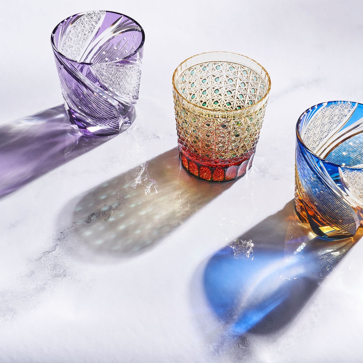 The skilled artisans employ the Edo Kiriko technique to intricately etch these delicate motifs into the glass, offering a unique twist on classic Japanese faceting. The result is a mesmerizing play of light and color that elevates your table setting to new heights of sophistication. Sip and savor, letting the captivating interplay of patterns and hues enhance your moments of relaxation and celebration.