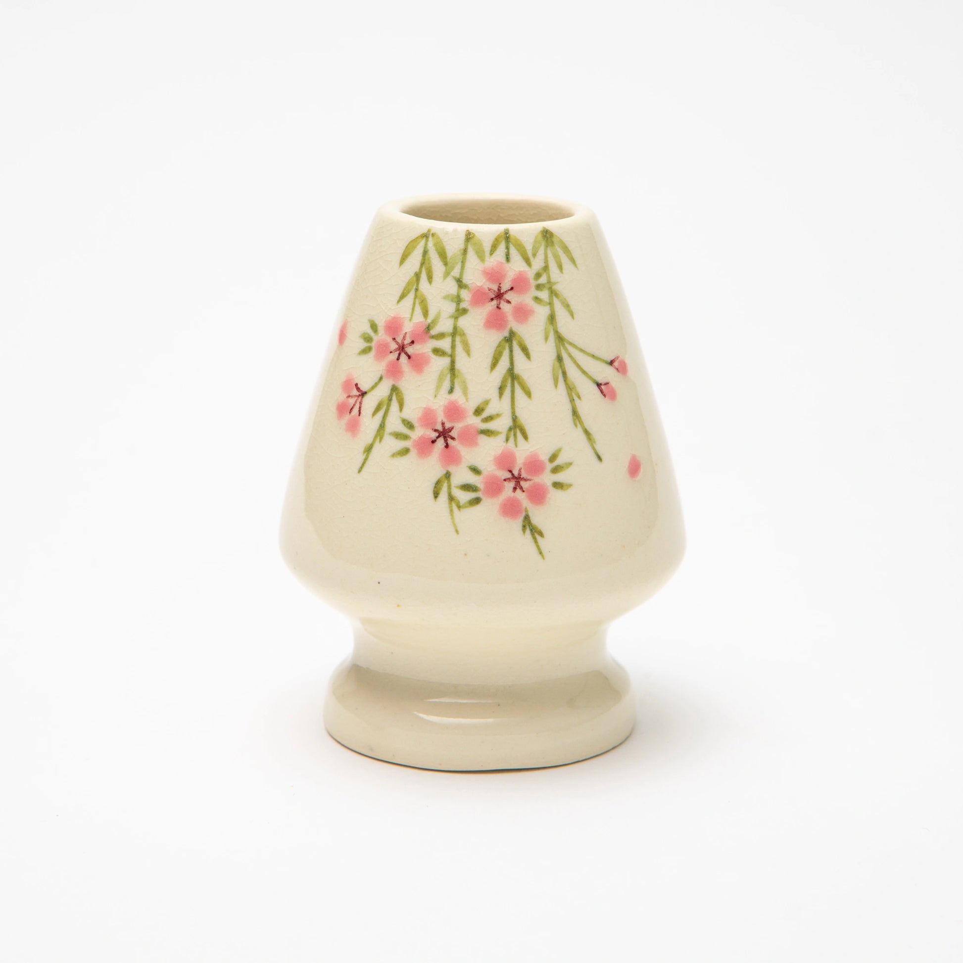 Embodying the fleeting beauty of spring, the Gion Sakura Matcha Tea Whisk Stand brings a poetic presence to the tea ritual. Handcrafted by Tosen Kiln, each piece is adorned with cascading cherry blossoms in soft pink and gentle green, evoking the quiet elegance of Kyoto’s Gion district. Designed to preserve the shape and integrity of your bamboo tea whisk, this ceramic stand is both a functional companion and a refined accent to your matcha setting. Whether displayed alone or paired with the matching Gion Sakura Matcha Bowl, it offers a sense of serene luxury for those who cherish both form and meaning in their tea practice.