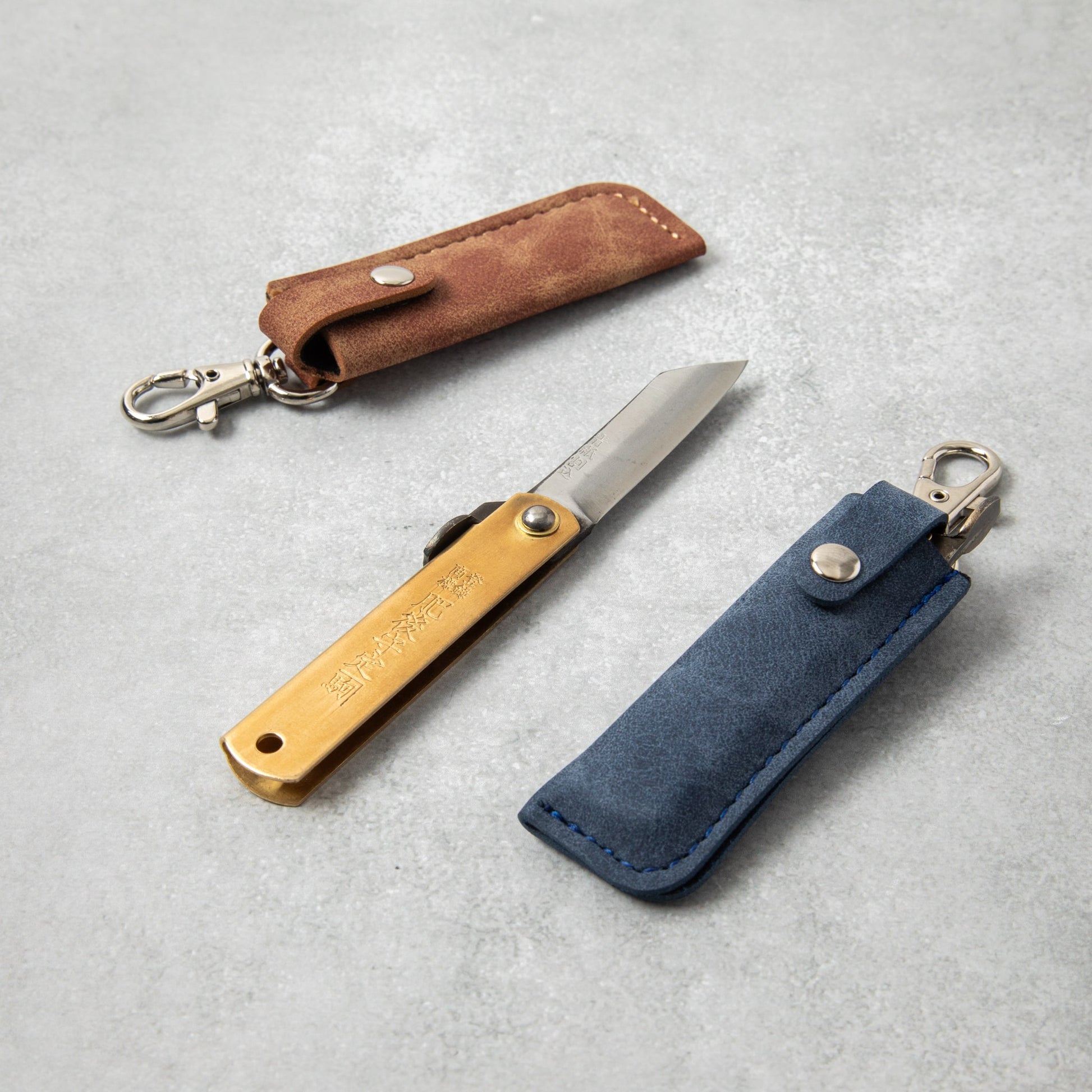 Higonokami Aogami Steel Clad Pocket Sized Folding Knife with Blue Sheath Case