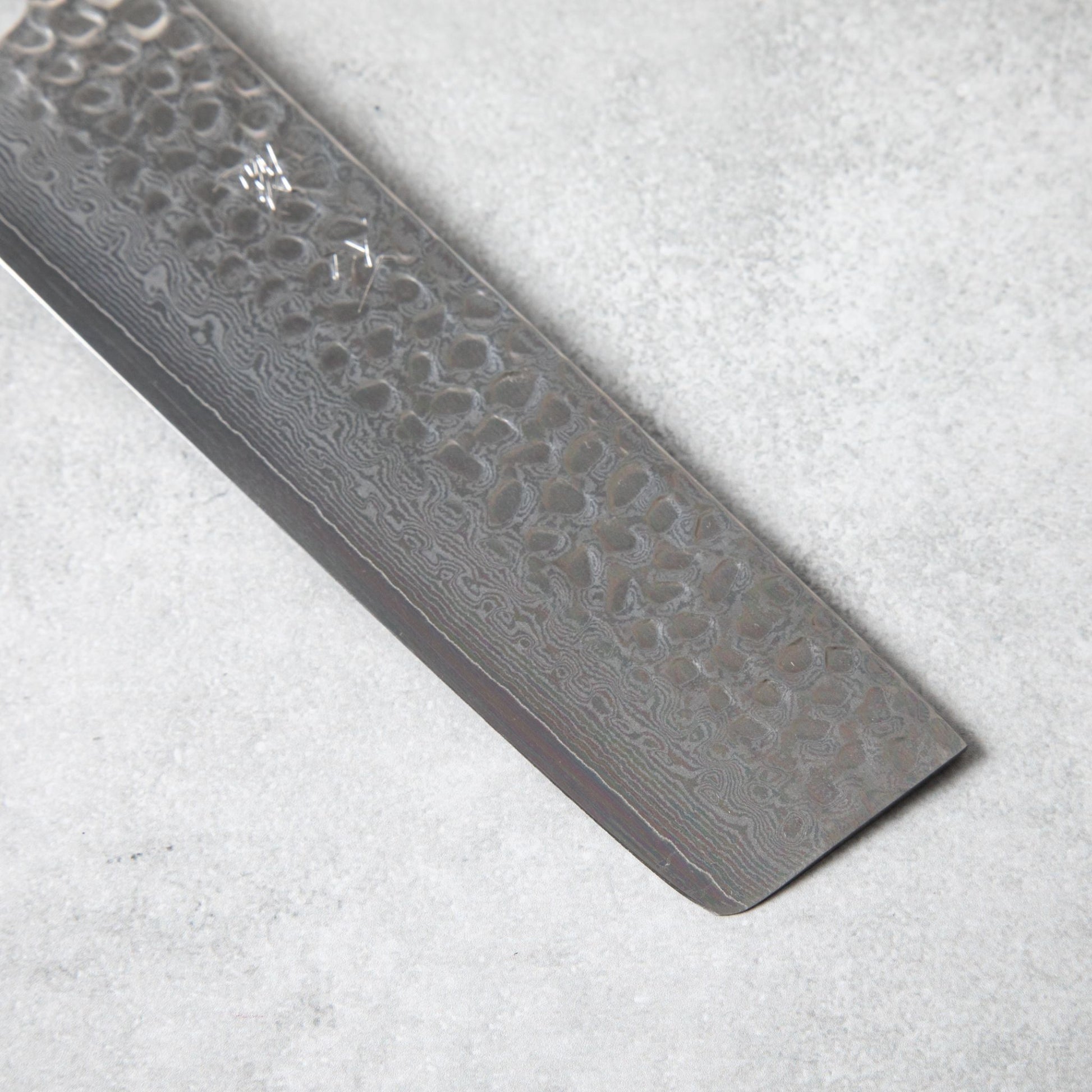 Tsuchime Damascus knives are a type of Japanese kitchen knife known for their distinctive blade texture and exceptional cutting performance. The term "Tsuchime" refers to the hammer-forging technique used to create a textured pattern on the blade's surface, resembling the ripples on water or the texture of hammered metal.