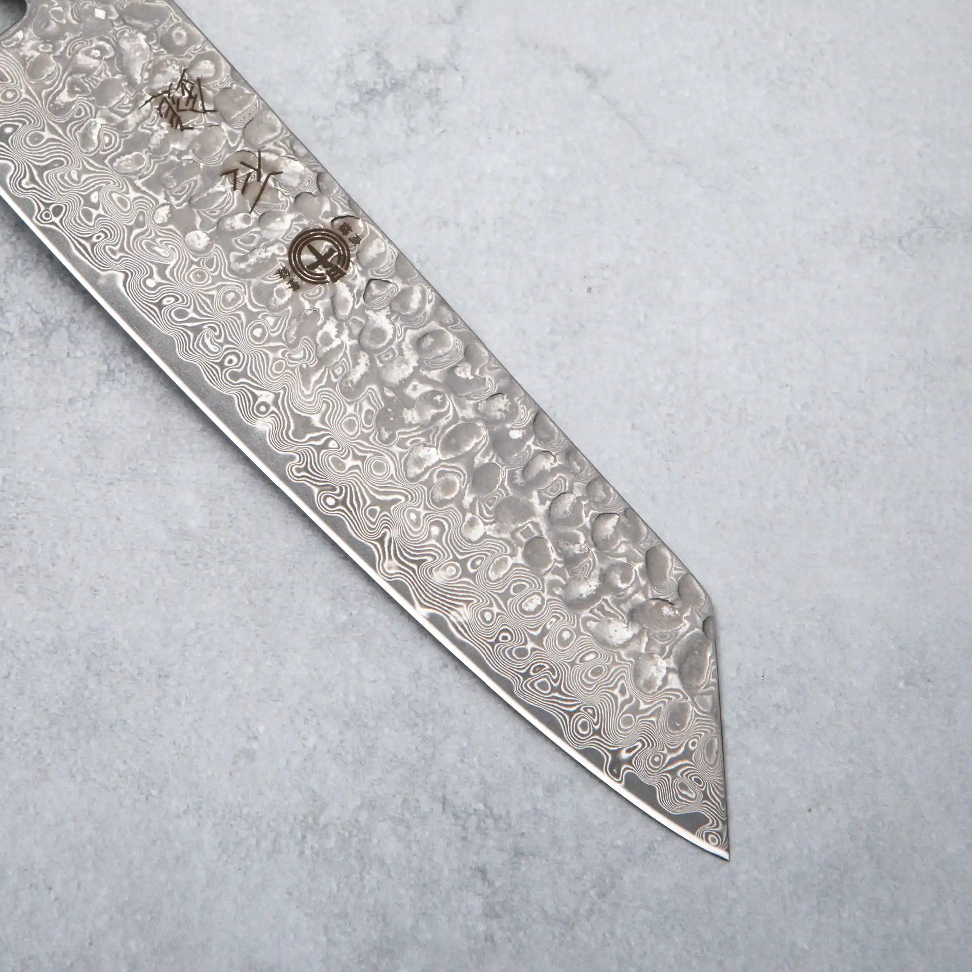 The Ishizuchi VG10 Damascus Tsuchime Kiritsuke Knife and Japanese Whetstone Set embodies the harmony of strength, precision, and refinement that defines Japanese craftsmanship. The 67-layer VG-10 Damascus Kiritsuke by Ishizuchi Knives is forged with a distinctive tsuchime hammered texture and finished through the maddo shiage (mud finishing) technique, revealing a Damascus pattern of luminous depth and clarity. Its elongated profile and finely honed edge offer exceptional control for both delicate slicing and versatile preparation. Paired with the Shoma Ceramic Iyo Whetstone by Iyo Kogyosho—crafted over years to recreate the responsive, natural feel of Iyo stone—this set delivers professional performance with timeless elegance. Presented in a refined gift box, it is available exclusively through Omakase for those who value enduring craftsmanship and quiet sophistication.