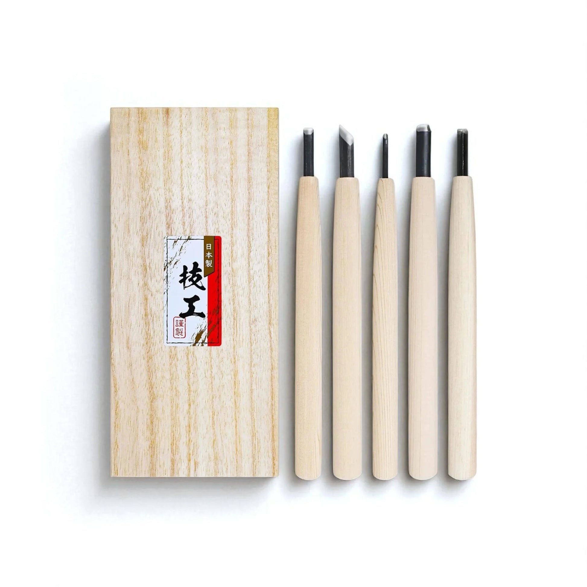 Kakuri Aogami Steel Wood Carving Knife Set (5pcs)