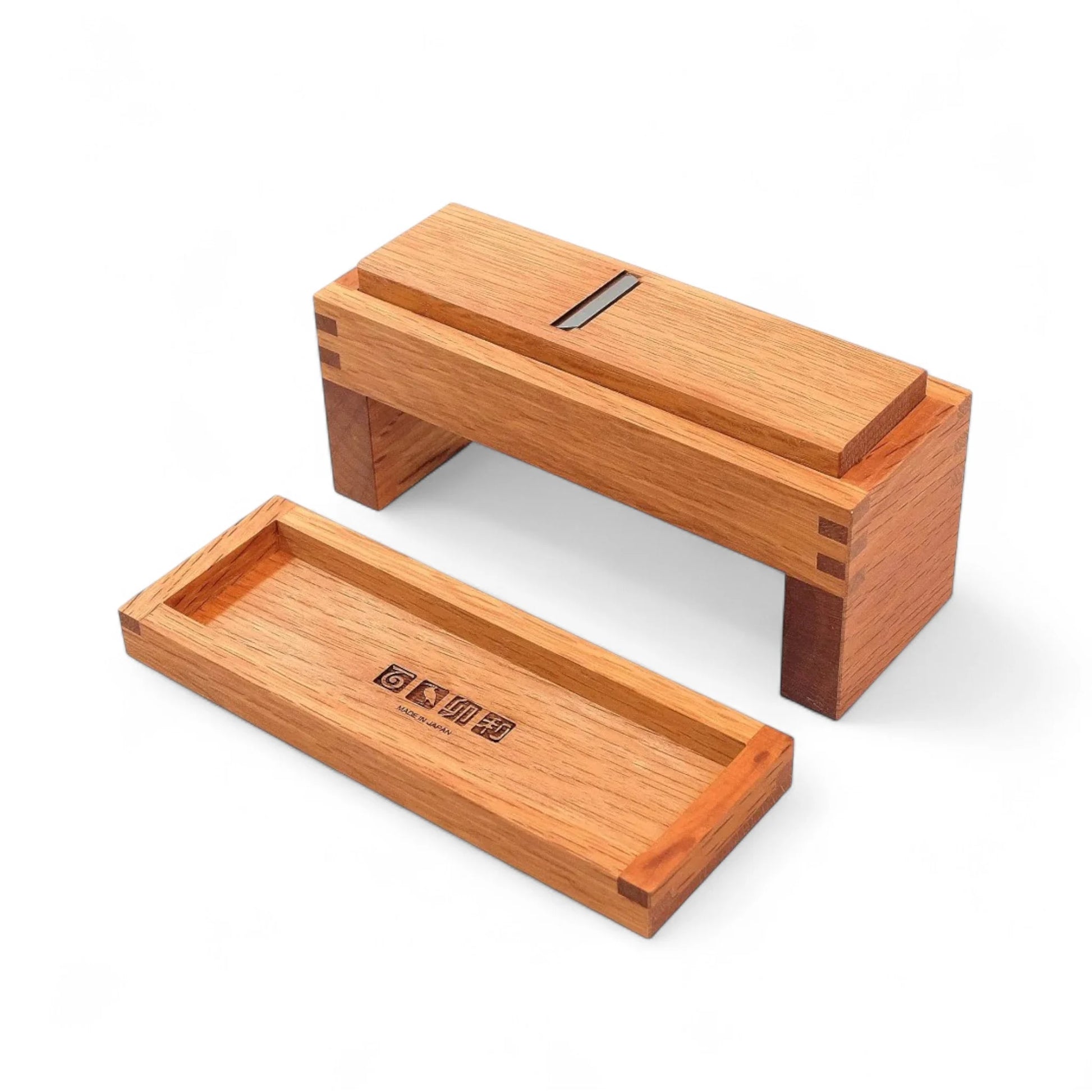 Housed in a robust body made from premium Japanese red oak, this shaver combines functionality with elegance. The natural oil finish accentuates the wood’s beauty, while the compact design allows for ease of use and storage. As you shave the katsuobushi, the satisfying sound—'KATSUO'—adds a sensory element to the preparation, evoking the rich culinary traditions of Japan.