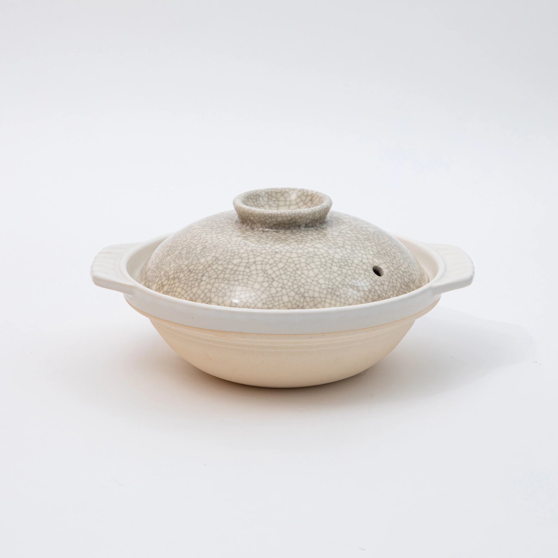 The Kannyu White Donabe Clay Pot by Sajitouki embodies quiet refinement and timeless utility. Finished in an elegant ivory glaze with a natural kannyu crackle pattern, each piece reveals subtle variations formed through the firing process. Handcrafted with care, its durable clay body distributes heat evenly, creating a gentle, consistent warmth ideal for everyday cooking and intimate meals. Designed for 2–3 people, it reflects Sajitouki’s philosophy of simplicity and balance—where beauty emerges through use, and tradition finds a place in modern living. A piece that enhances both the meal and the moment, uniting craft and comfort at the table.