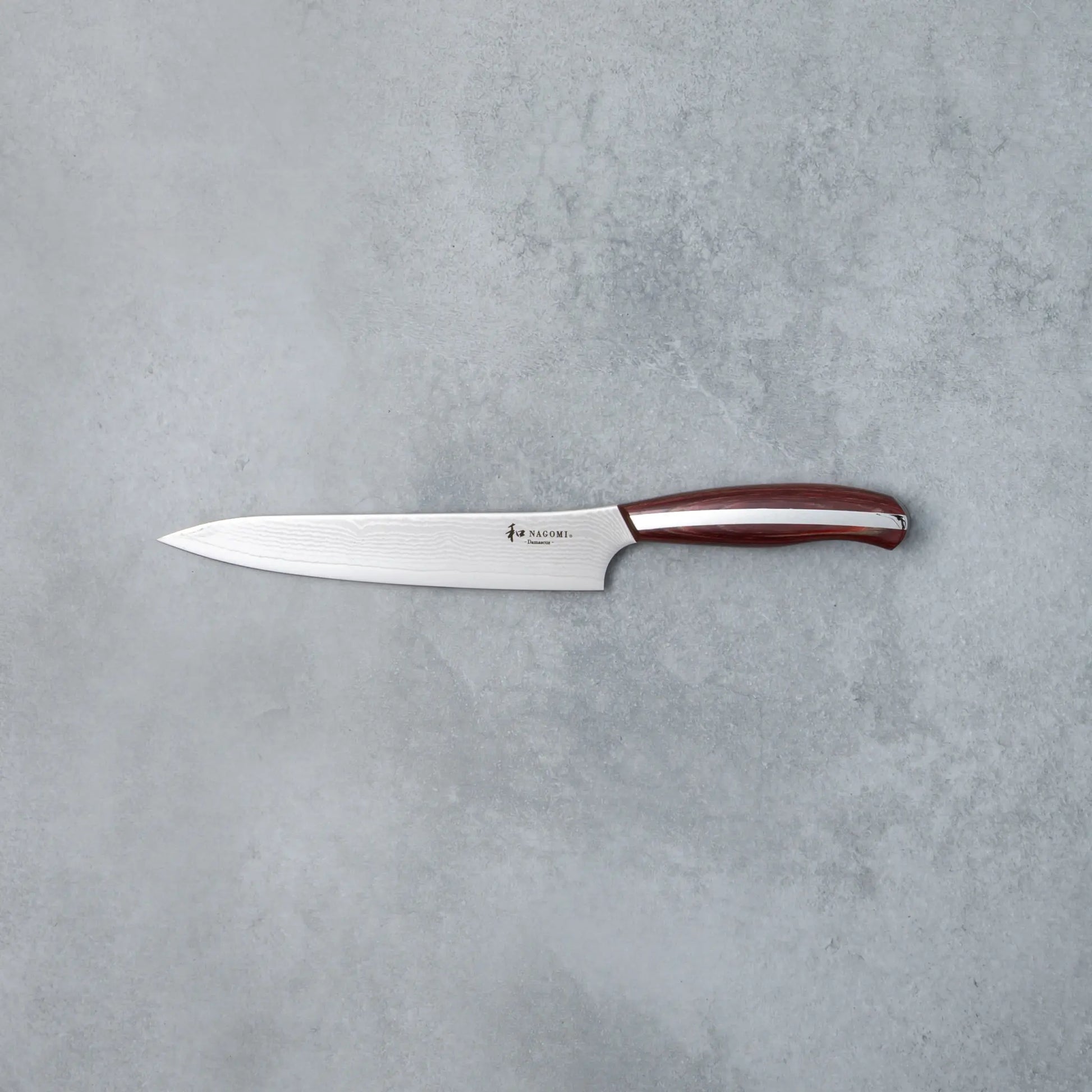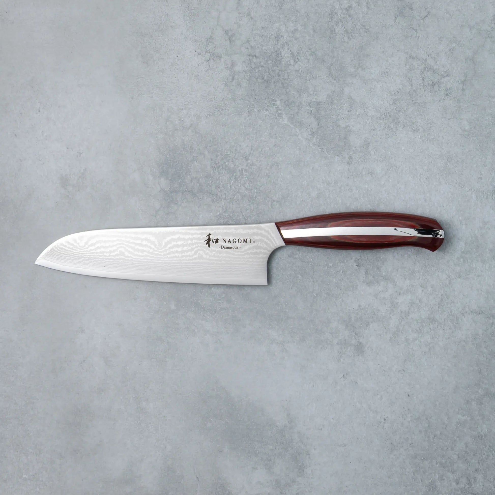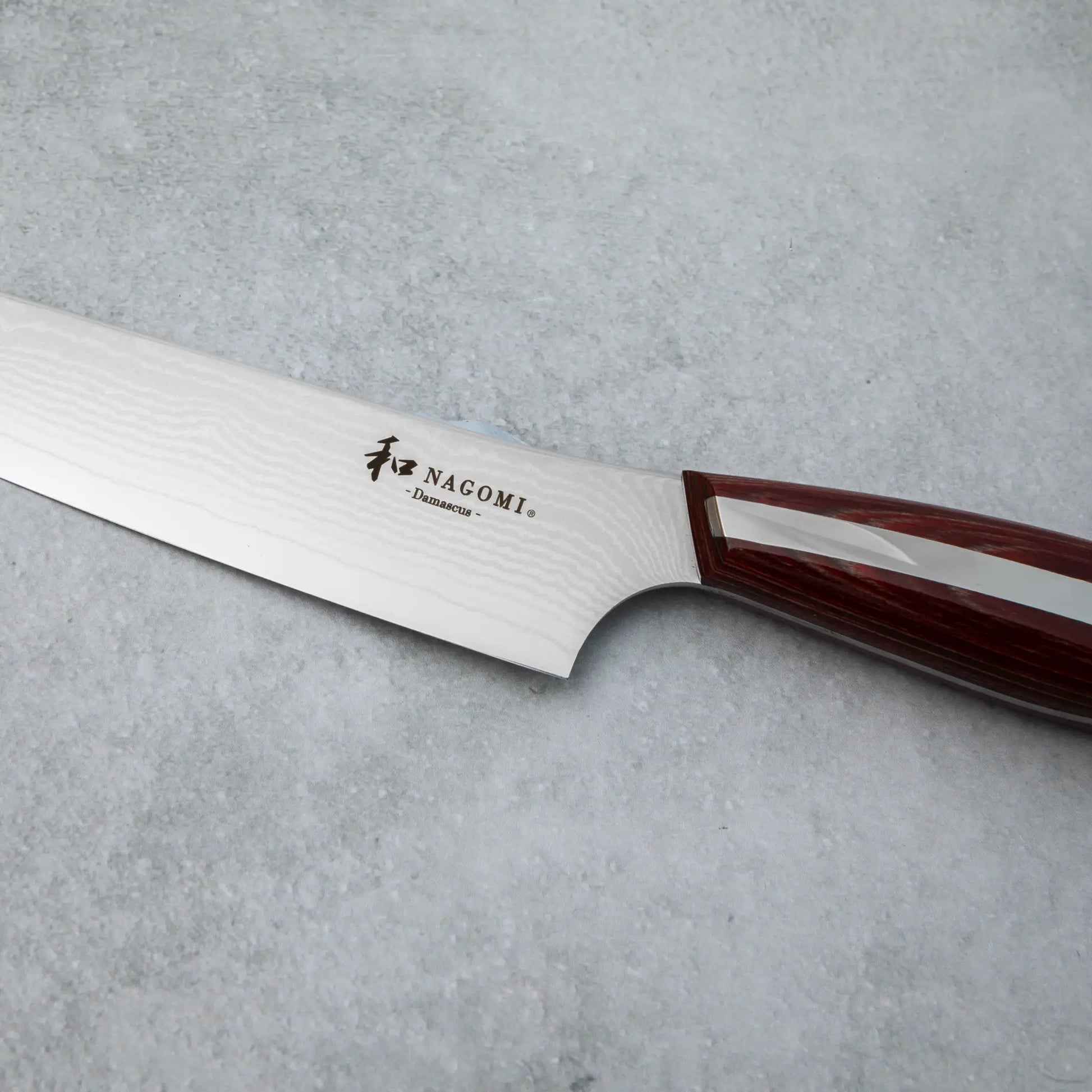 The NAGOMI Damascus Santoku and Utility Knife Set by Mitsuboshi Cutlery showcases the fusion of precision and artistry that defines Seki’s centuries-old blade tradition. Forged from 33 layers of Damascus steel with a VG-10 core, each knife displays a unique wave-like pattern across its surface, symbolizing strength and harmony. The Santoku offers a balanced weight and exceptional sharpness for effortless cutting of meat, fish, and vegetables, while the smaller utility knife excels in delicate, detailed tasks. Both feature ergonomic handles that fit naturally in the hand, ensuring comfort and control through every motion. Presented in an elegant gift box, this set embodies the spirit of refined craftsmanship—an enduring gift for those who appreciate the quiet beauty of Japanese steel.