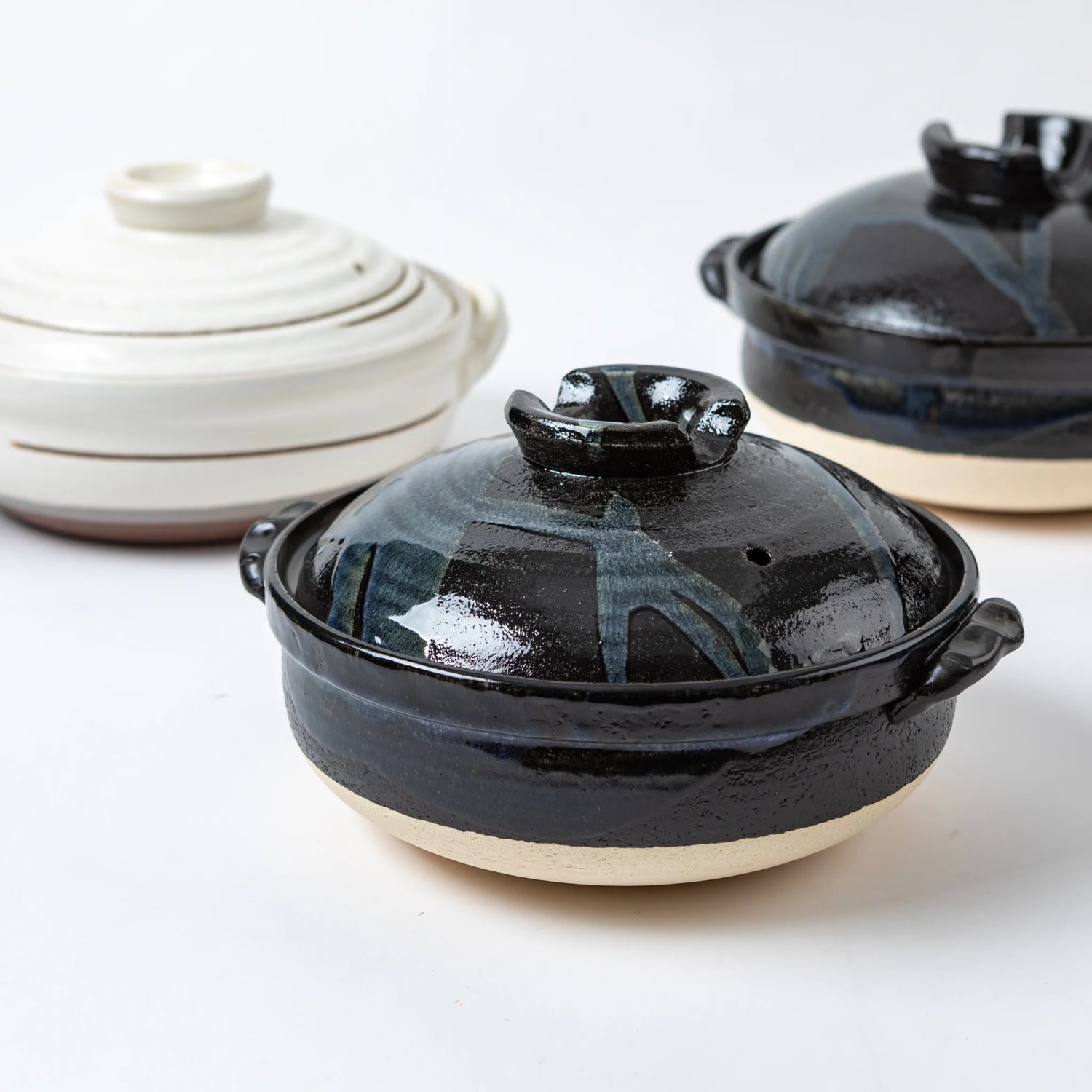 Crafted by Sajitouki, this donabe clay pot showcases a quiet elegance rooted in Japanese ceramic tradition. Its black glaze surface is accented with hand-painted plum blossoms, capturing a natural rhythm that feels both grounded and timeless. Designed for everyday use, the pot is made from heat-retaining clay that distributes warmth evenly—perfect for one-pot meals shared among family or close friends. The floral motif continues over the lid and side, creating a unified visual presence when set on the table. Its deep form accommodates generous servings, making it ideal for comforting stews, soups, or seasonal hotpots. Whether used for weeknight dinners or special gatherings, it’s a piece that invites you to slow down and savor.