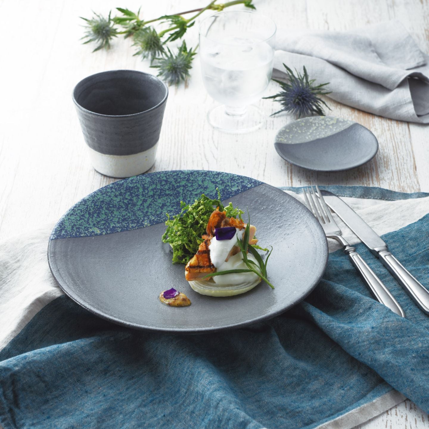 This stunning Konkikyo Bowl features a beautifully contrasting dark blue and jade-dappled glazed pattern at the base of the bowl, with the stone flecks enhancing the look. Enhance your dining ambiance with this gorgeous and practical addition.