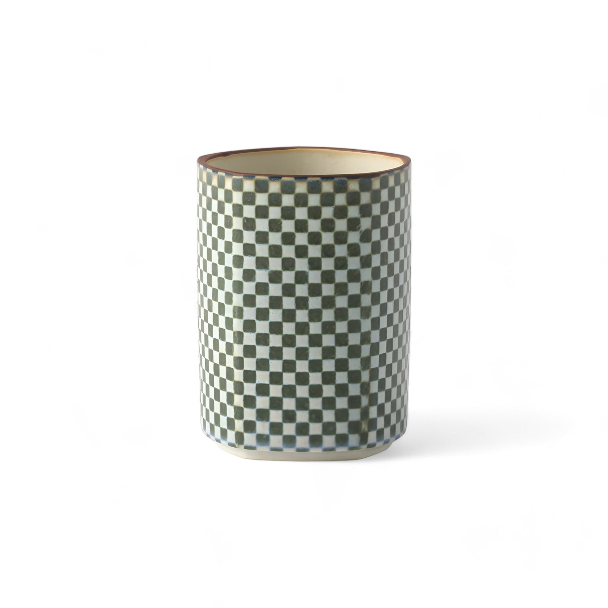 Experience the classic elegance of the Checkered Patterned Pentagon Teacup from Shinzangama Yamatsu. This teacup features a timeless checkered pattern, meticulously crafted into a stylish pentagon shape. The design evokes a sense of balance and harmony, making it an ideal choice for those who appreciate both tradition and modernity.