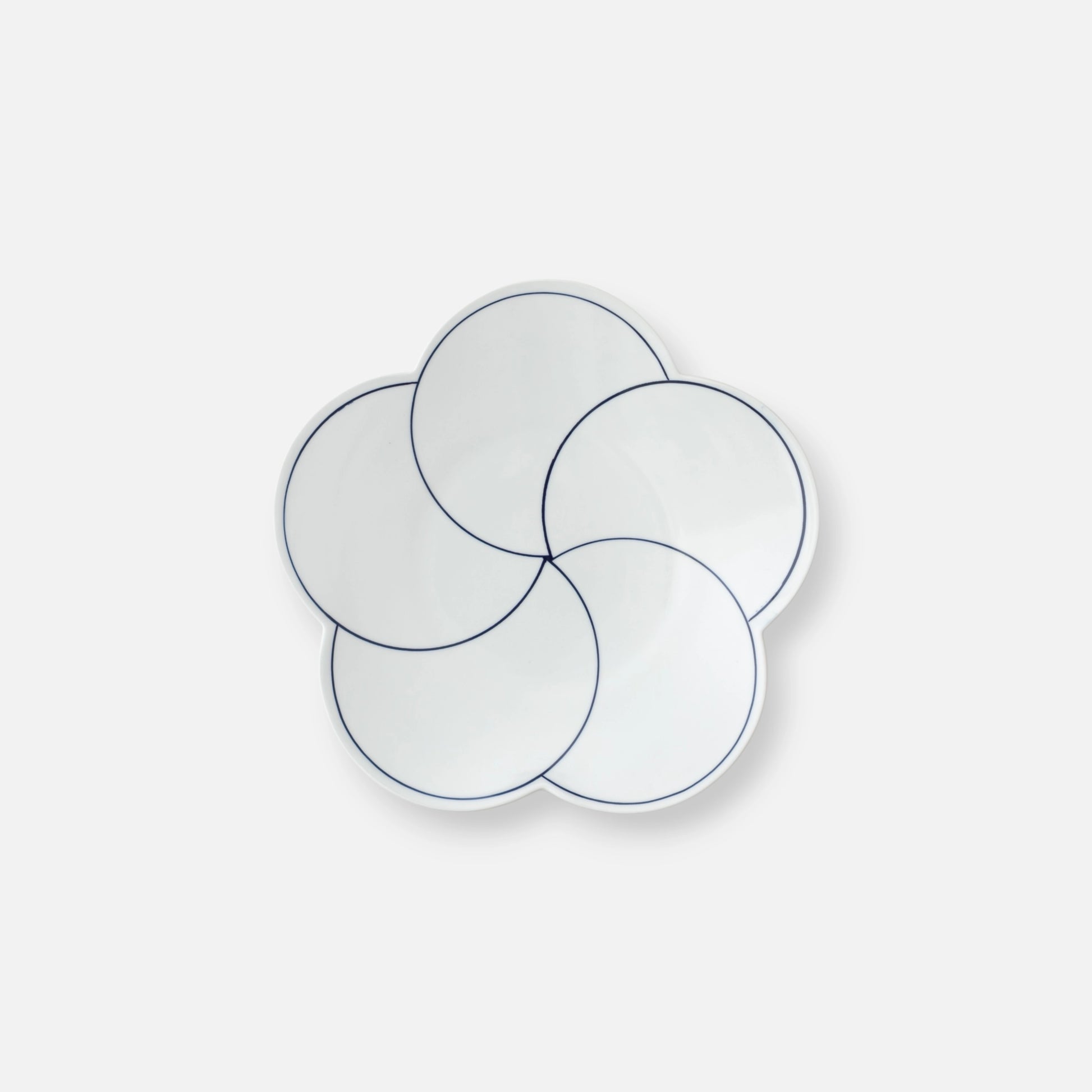 Petite yet intentional, the Twisted Plum Small Plate by Kouringama captures the quiet elegance of Hasami ware in a modest footprint. Its rounded petal-like form traces the outline of a stylized plum blossom, rendered in pristine white porcelain with fluid indigo linework that feels both spontaneous and precise. Ideal for small portions—like pickles, sweets, or side garnishes—it invites a sense of proportion and attentiveness to everyday dining. The subtle undulation of the form adds softness to the table, while its simplicity ensures versatility across a range of settings. Each plate is individually made, carrying the tactile warmth of handcrafted porcelain. With its compact size and sculptural silhouette, this piece exemplifies the kind of design that lingers quietly in memory—useful, beautiful, and quietly rooted in Japanese ceramic tradition.